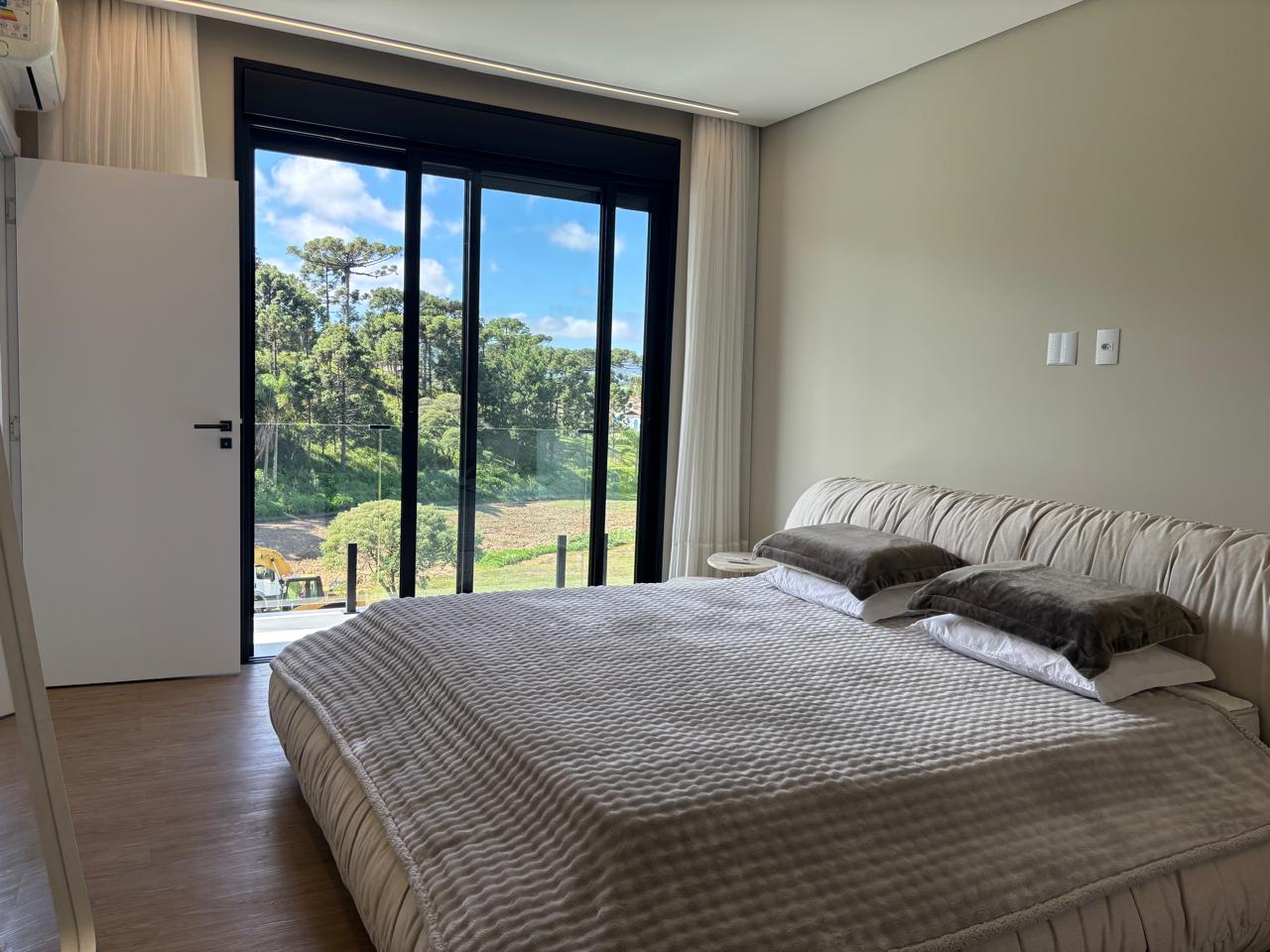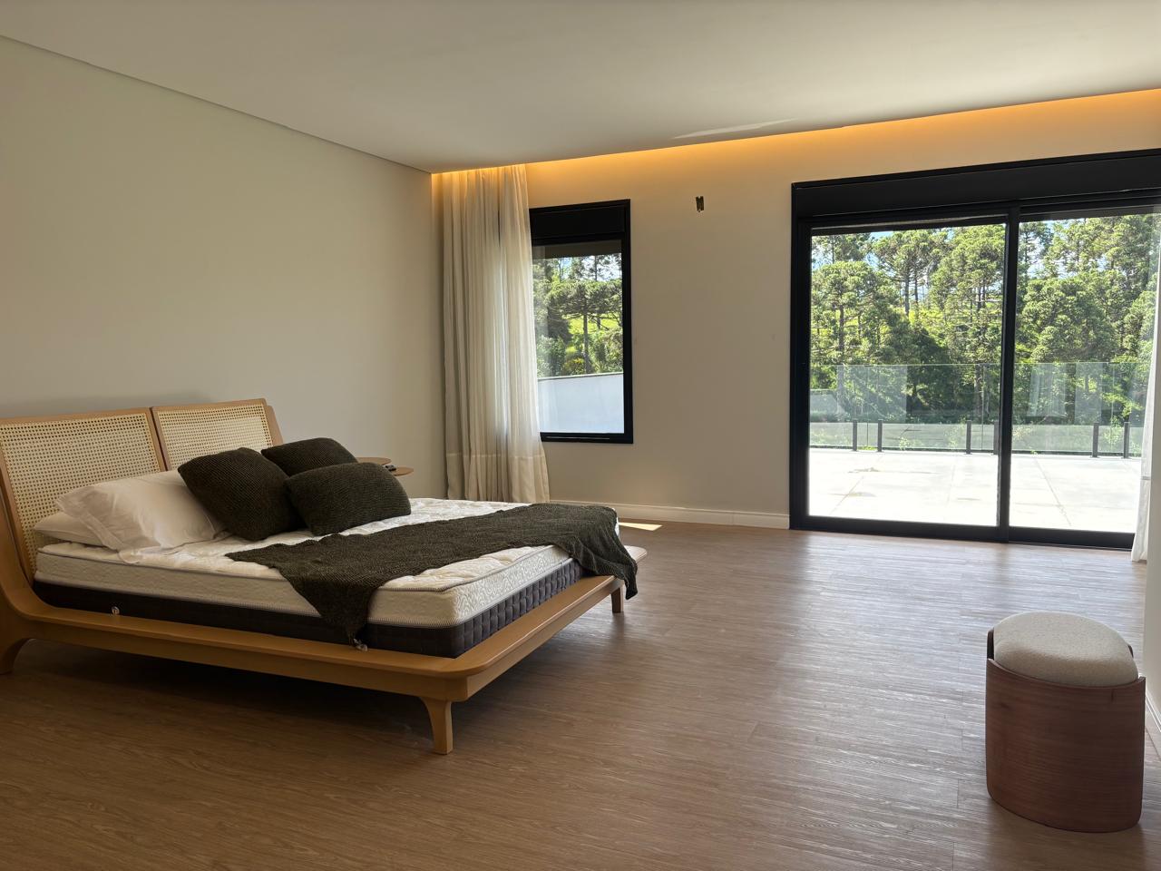 Desfrute de total privacidade na área íntima, que oferece 4 suítes elegantes. A deslumbrante Suíte Master, com 41 m², é um verdadeiro santuário pessoal, também com lareira, proporcionando todo o relaxamento que você merece após um dia na serra. Todas as suítes são imersas em modernidade, com esquadrias sofisticadas e persianas elétricas blackout, garantindo descanso absoluto.